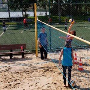 A empresa Set Point é a responsável pelas aulas de vôlei em quadra e na areia.