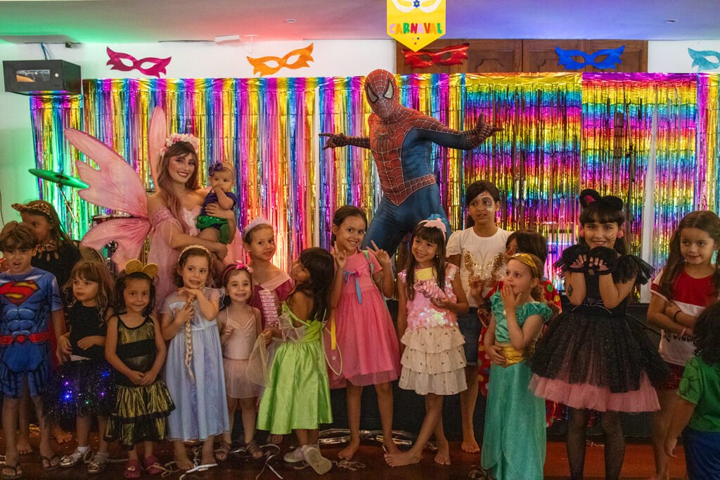 Os personagens Homem-Aranha e Fada Rosa circularam pelo salão, interagindo com as crianças e garantindo fotos e sorrisos ao longo da tarde. A maquiagem artística também fez sucesso, com produções coloridas que deram ainda mais brilho às fantasias.