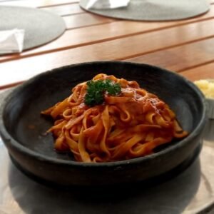 No Caíque temos três opções de molho para saborear o fettuccine: pomodoro, bolonhesa ou três queijos. Há ainda a opção de consumir o fettuccine sem molho, ao alho e óleo. Vale a pena experimentar!