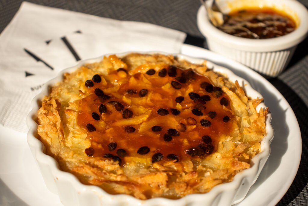 O menu reúne opções de entradas, pratos principais e sobremesas, além de uma seleção de bebidas, com destaques que vão de releituras contemporâneas a clássicos do Caiçaras.